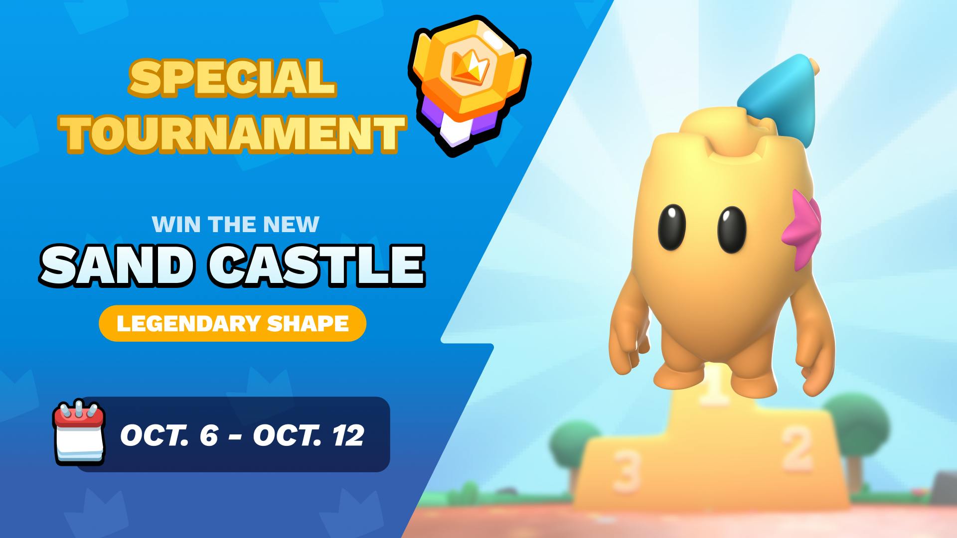 🏅 Oct 3. — Special Tournament: Beat the Elite Division next week to get the NEW Sand Castle Shape! [Oct. 6 - 12]
