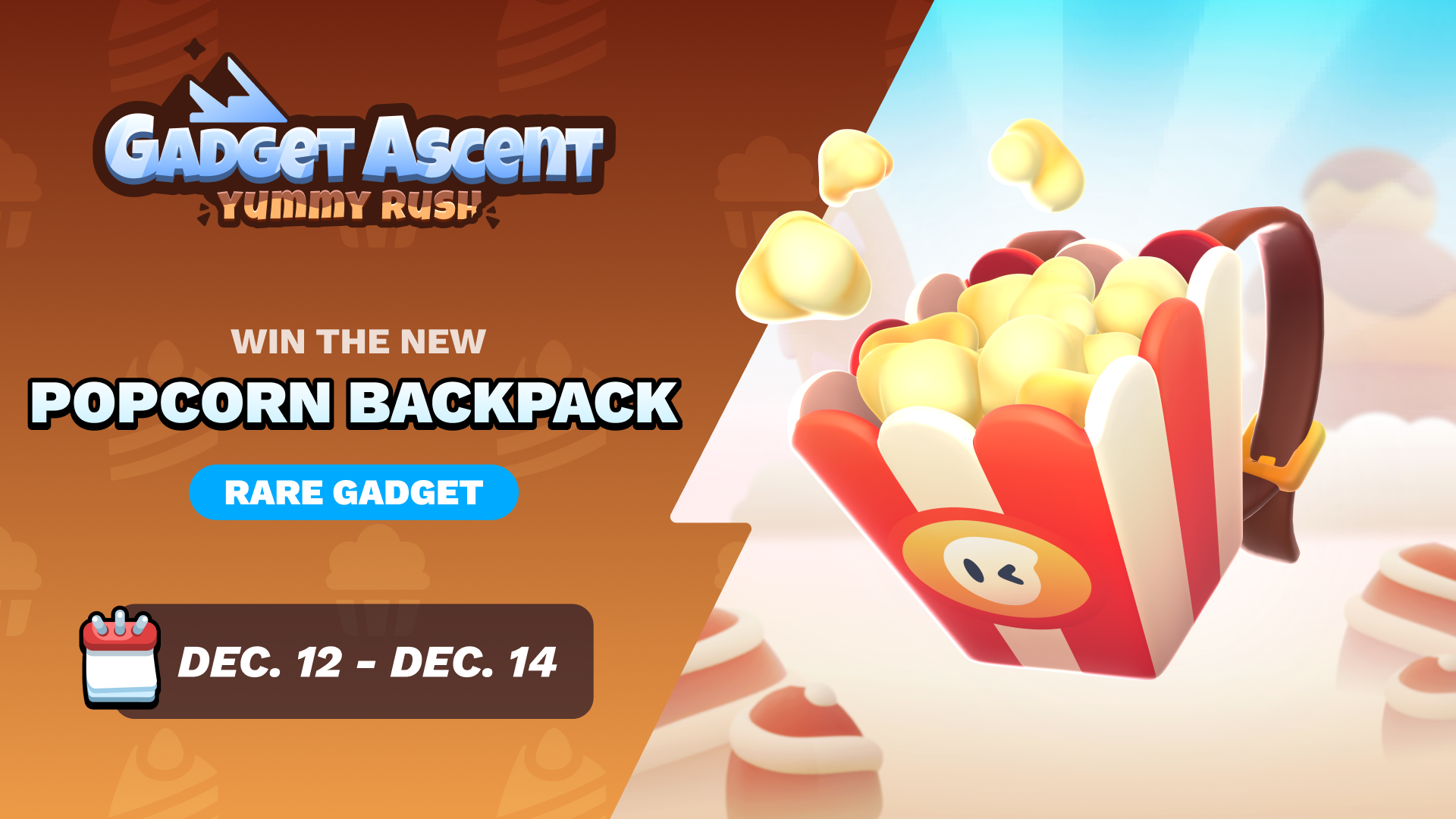 🏔️ Dec. 11 — Yummy Rush Gadget Ascent: Climb to the top for the new Popcorn Backpack Gadget! [Dec. 12 - 14]