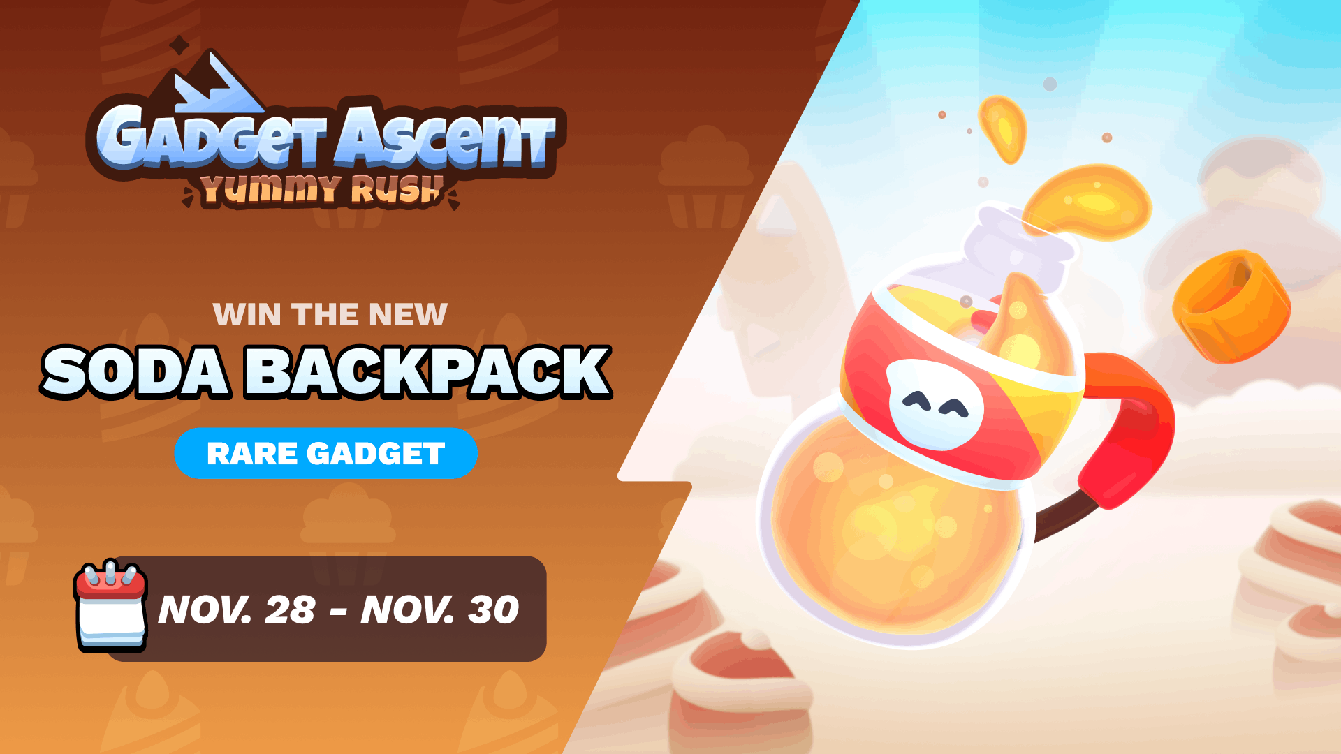 Read more🏔️ Nov. 27 — Yummy Rush Gadget Ascent: Climb to the top for the new Soda Backpack Gadget! [Nov. 28 - 30]